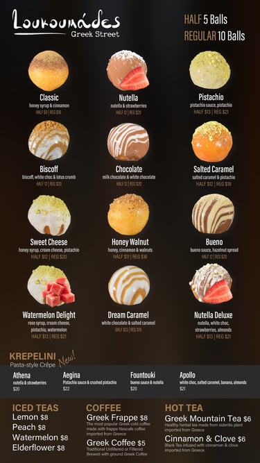 Every tray of Loukoumades is made fresh, hot, and drizzled with love.